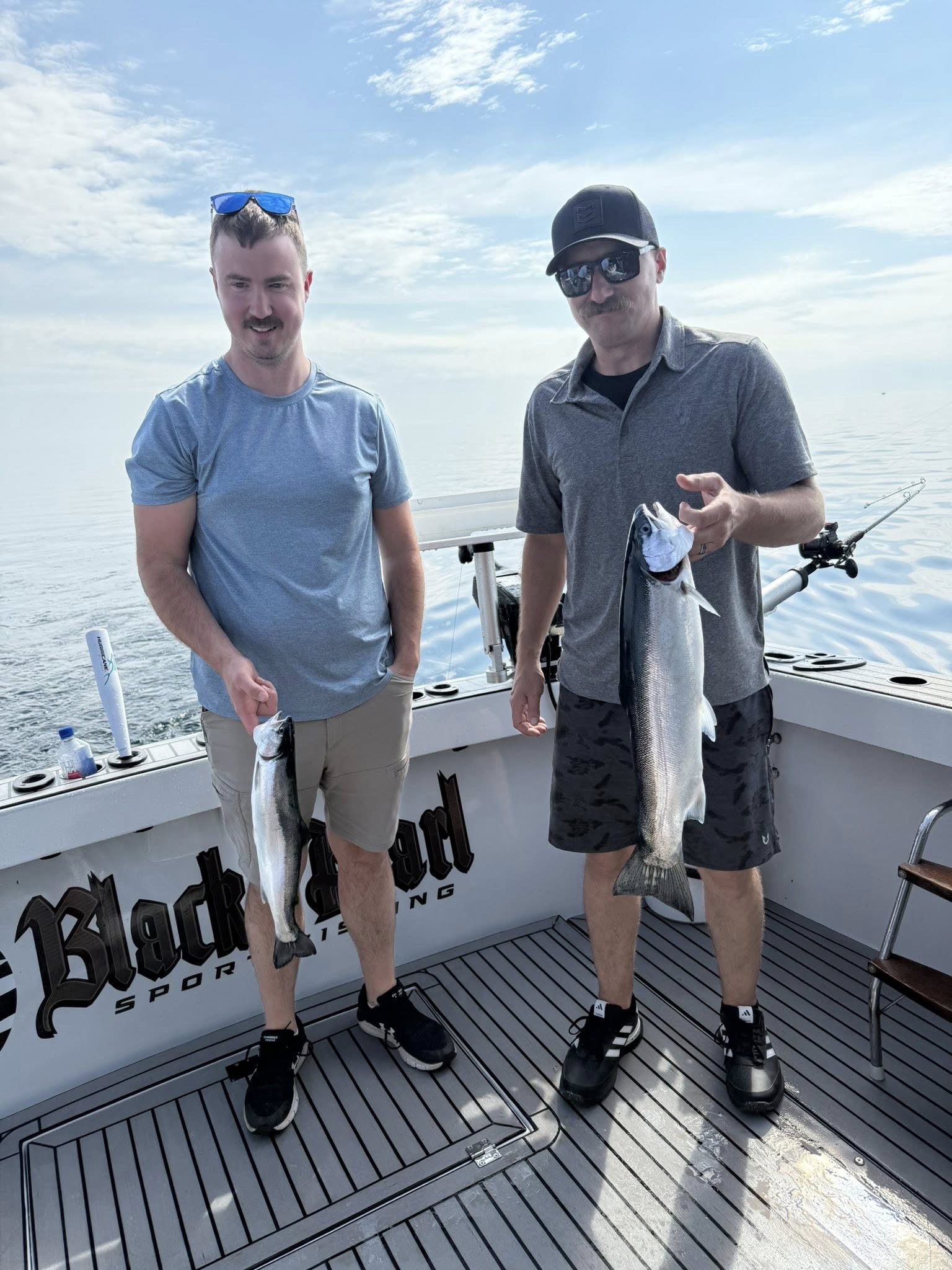 This isn't your average fishing trip – we're talking 10 solid hours of non-stop action on Lake Michigan. The captains will get you dialed in on everything from setting up your gear to reading the water and spotting fish. You'll be targeting some of the lake's most prized catches: Chinook (King) Salmon, Coho Salmon, Lake Trout, and Brown Trout. Don't sweat it if you're new to this – Patrick and Alex have seen it all and they'll make sure you're comfortable every step of the way. By the end of the day, you'll be reeling them in like a pro!
